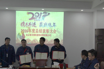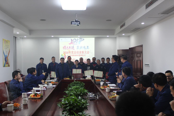 企业的发展离不了各岗位人员的努力与付出,接着,公司生产副总施亚春和总经理为2016年度先进班组3组(生产甲班,后勤班组,机修班组),先进个人12人(韩波,刘煜、徐进国、王玉生、朱志杰、王勇、朱维庆、武勇、周殿云、张美花、孙良学、高修福)颁发了荣誉证书和奖金。表彰后,先进员工代表和先进班组代表分别发言。他们积极发言,鼓舞员工士气,大家纷纷表示会以高昂的,积极的态度投入工作中,共同创造美好的明天!