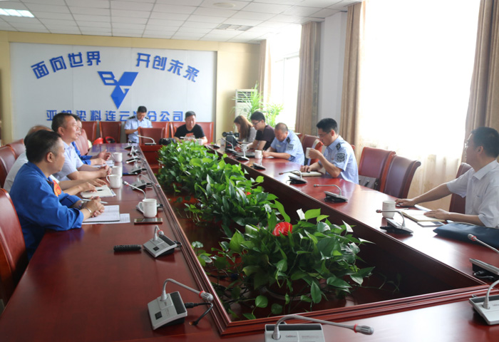 公司总经理强万华、安全副总吴照谋、安全部长唐善国在办公楼三楼会议室接待了杨队长一行,另连云港化工产业园区安监局张庆荣副局长也一同做了接待汇报工作。