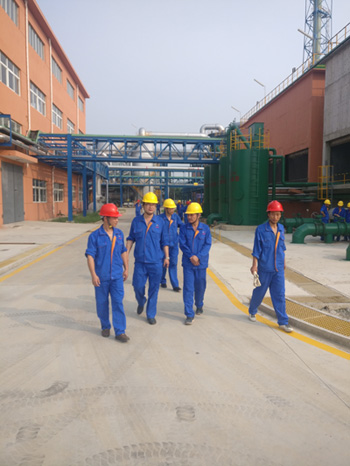8月11日下午2:40,烈日当空,热浪袭人。由连云港分公司生产一部部长钟金龙和副部长胡和平带队,组织各车间主任及生产现场管理人员10余人,前往亚邦染料兄弟单位亚邦制酸观摩学习,进行实地参观并和他们现场交流管理经验及清洁化生产的做法。