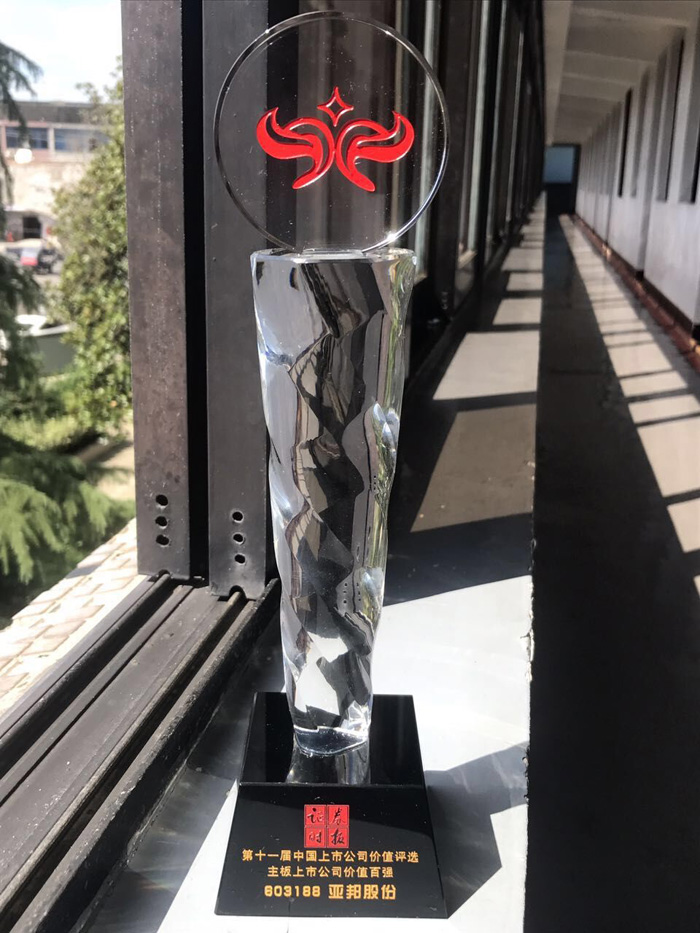 2017年8月22日,由证券时报、中国基金报、中国上市公司发展联盟等联合举办的“改革厉行价值起舞——2017上市公司价值投资·中国资产管理高峰论坛暨中国上市公司价值评选颁奖典礼”在杭州顺利举行。亚邦股份凭借出色的综合实力荣膺第十一届中国上市公司价值评选“中国主板上市公司价值百强”的称号,这是亚邦股份第二次跻身百强榜单。