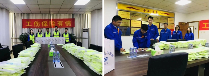 6月3日灌南县人社局工伤科到连云港分公司开展“预防工伤送温暖”活动,为企业免费提供了一批反光背心,要求企业加强工伤预防知识的宣贯工作。公司把反光背心发放给员工的同时,要求员工上下班途中坚持穿反光背心,树立起“安全就是为自己,安全就是为家人”的安全意识。